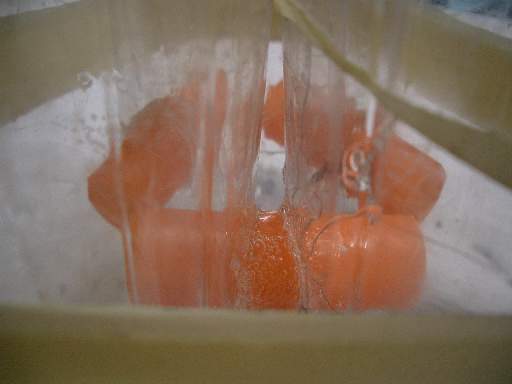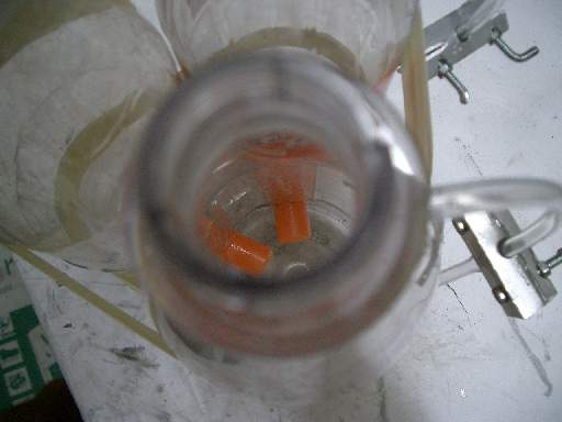 Die drei Flaschen sind am Anfang alle mit Wasser gefüllt. Durch die Ausgleichsrohre kann das Wasser zwischen den Flaschen hin und herfliessen.